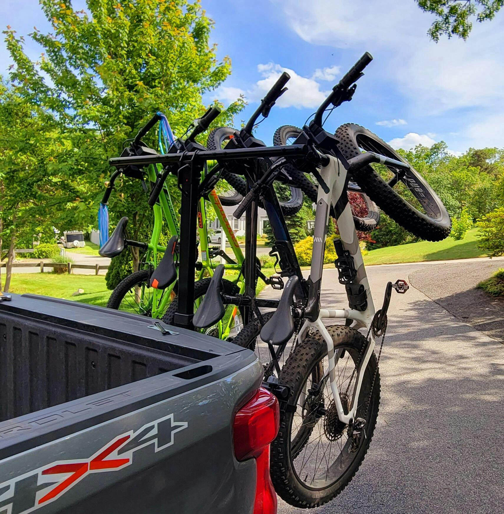 On first use, this rack is awesome! I have the four bike version and it easily loaded 4 bikes (one full suspension MTB, one fat bike, one 24"kids and one 20"kids). The bikes can hang by the handlebars before strapping them in, which makes it really easy. The best part is that it doesn't need any adapters whatsoever for any bikes. It's heavy, but still lighter than the other 4-bike hanging systems on the market (1-up and Velocrax) and I had no problem at all moving in and out of the hitch.