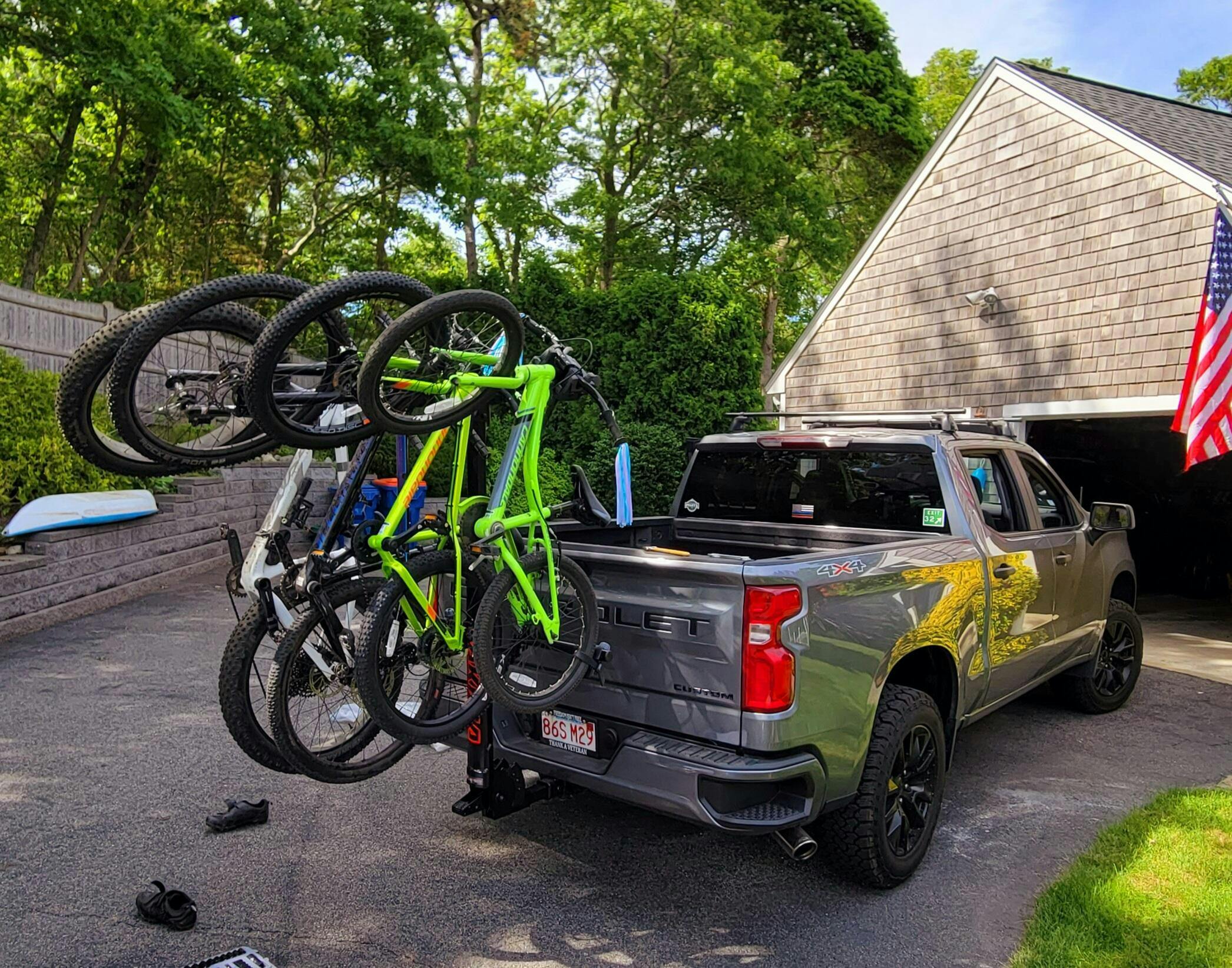 | Weight Capacity | 215 lb (up to 70 lbs. per bike on the center two cradles, up to 37.5 lbs per bike on outer cradles) |